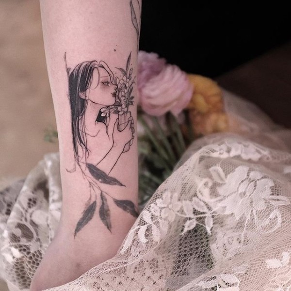 27张可爱美丽的卡通小女孩--纹身师rikkiiies的纹身图案作品