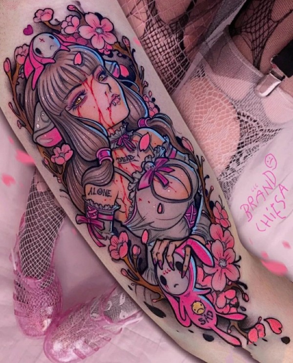 靓丽彩色的女生二次元纹身图片9张