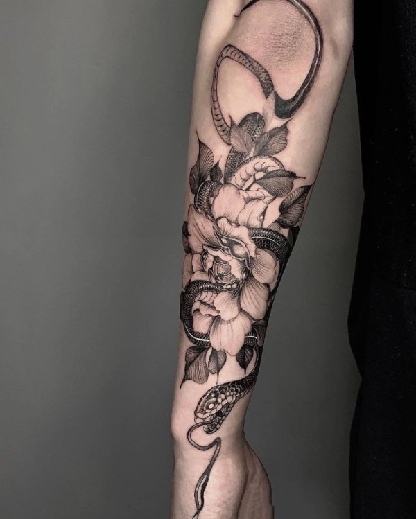 9张精美的黑灰蛇纹身图片