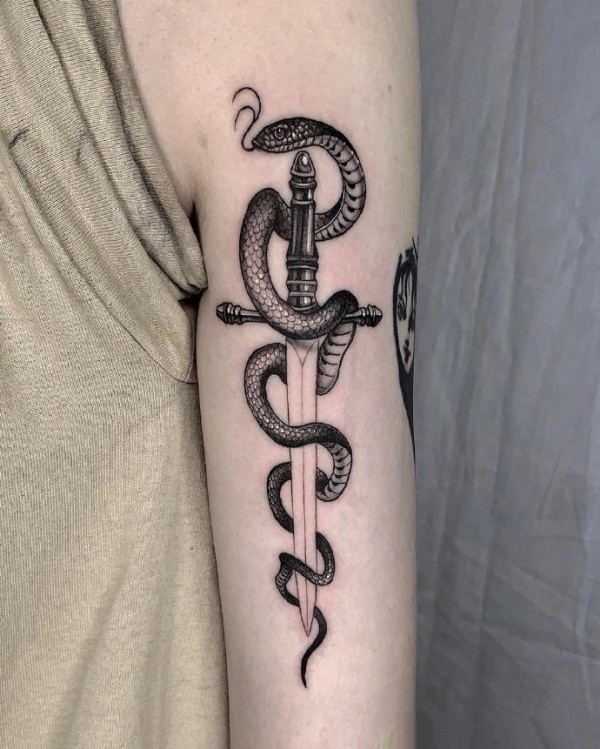 黑色和白色手臂眼镜蛇纹身动物几何点刺纹身图案