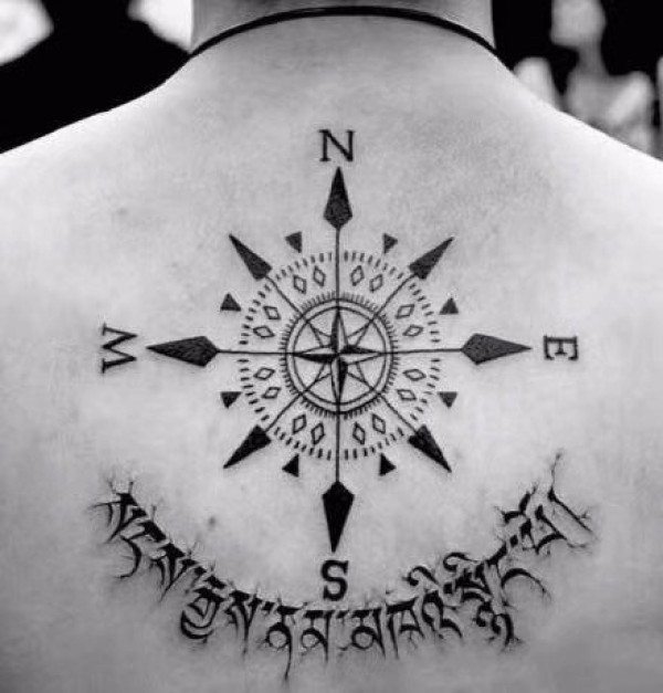 纹身指南针 水彩与线条结合的指南针纹身图案