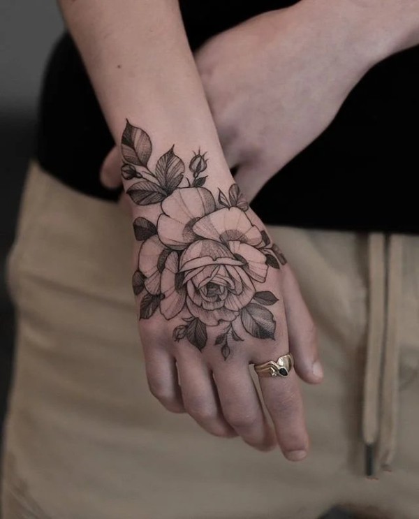 女性各部位的9款黑灰色素花纹身图片