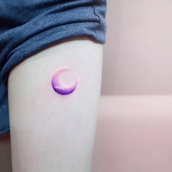 小清新的女生彩色月亮纹身图案作品9张