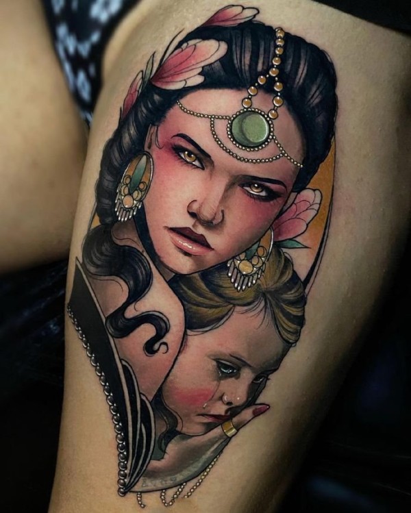 彩色newschool-女生比较青睐的newschool彩色纹身图片