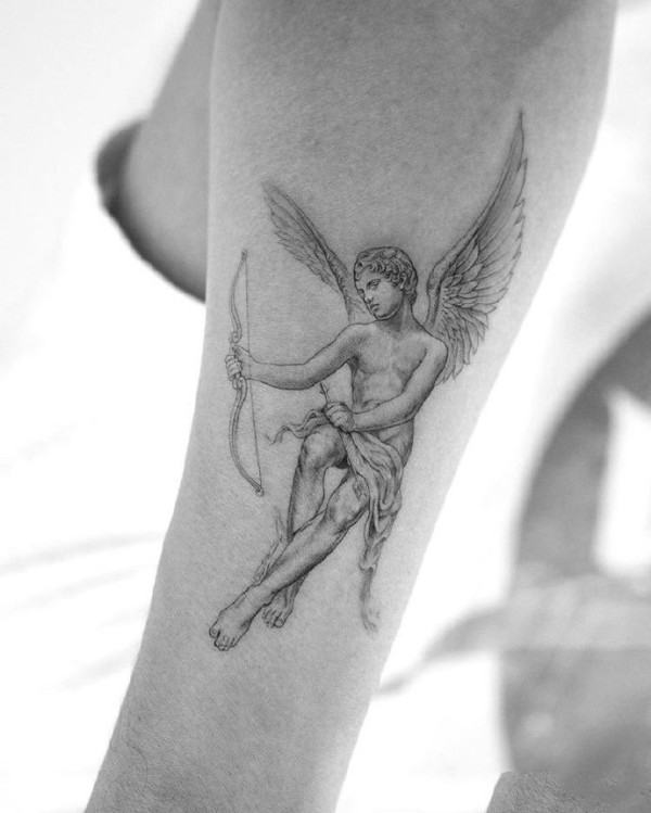 腿部黑灰天使纹身图案_天使纹身图案大全_纹身图吧