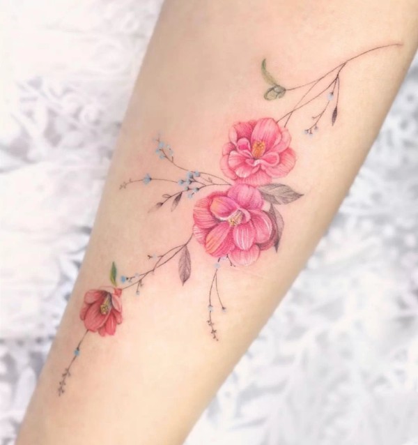 纹在手臂胳膊上的黑灰素花花卉纹身图案欣赏