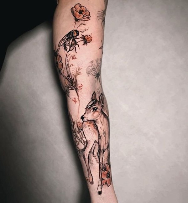 清新花朵腿部纹身图案图片_植物纹身图案大全_纹身图吧