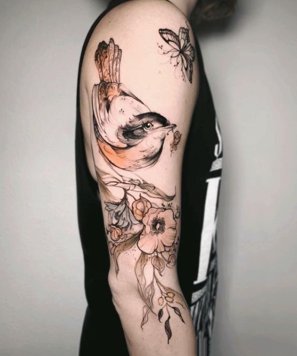 后肩唯美花藤英文图案图片_植物纹身图案大全_纹身图吧