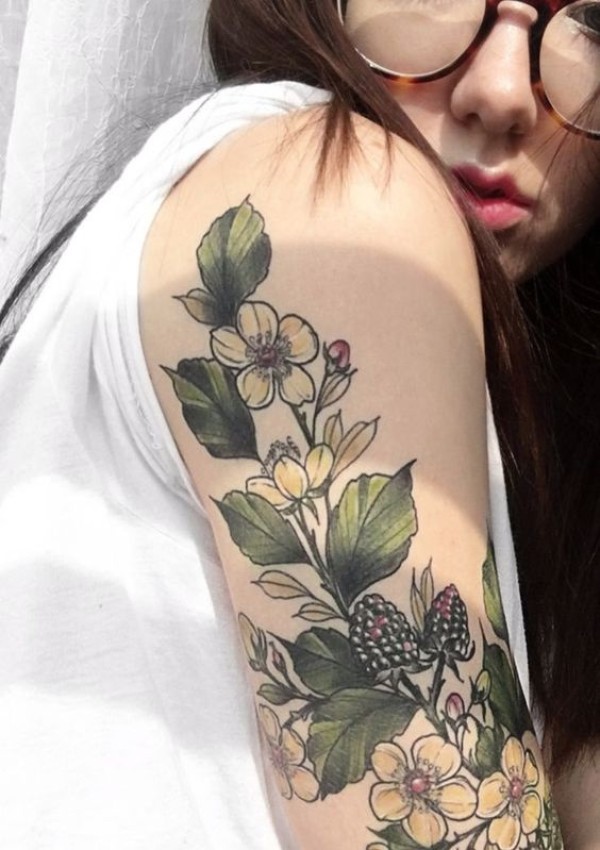 后肩唯美花藤英文图案图片_植物纹身图案大全_纹身图吧