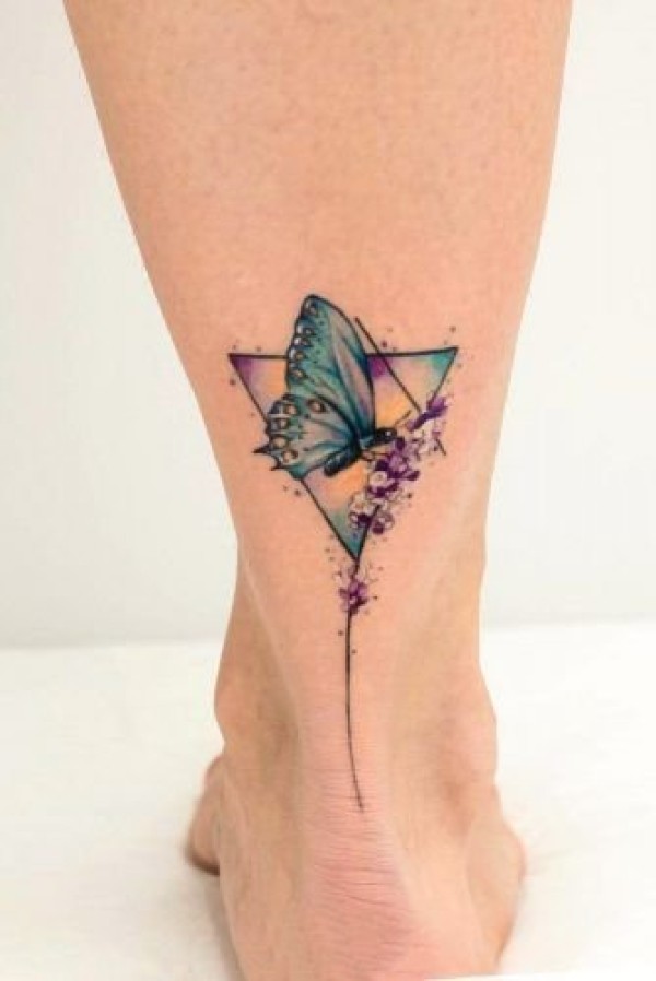 女生腿部漂亮的彩色蝴蝶结纹身图案_蝴蝶纹身图案大全_纹身图吧