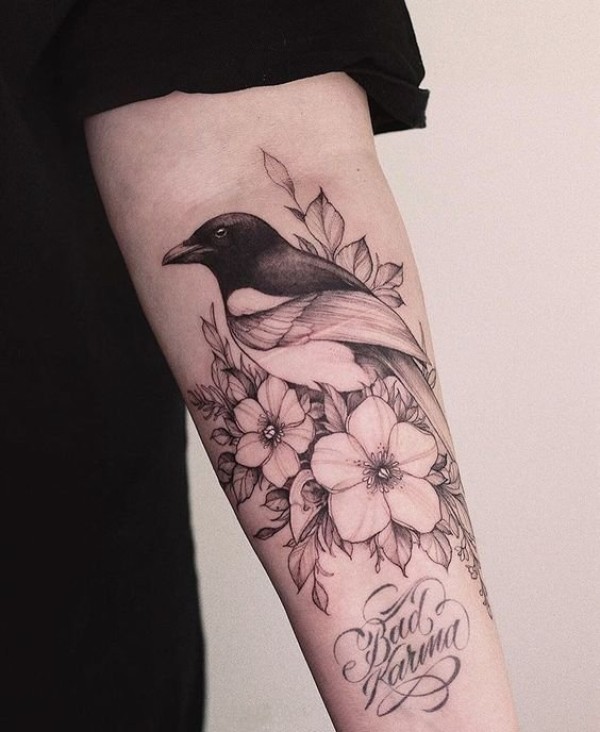 鸟纹身图案 身体各部位鸟和花朵搭配的鸟纹身图案