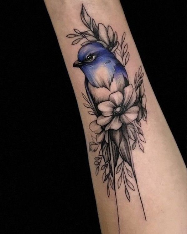 鸟纹身图案 身体各部位鸟和花朵搭配的鸟纹身图案