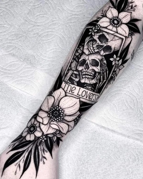 欧美花臂纹身_22张霸气黑灰欧美大黑花臂纹身图案作品图片