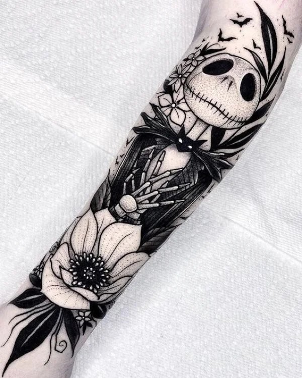 欧美花臂纹身_22张霸气黑灰欧美大黑花臂纹身图案作品图片