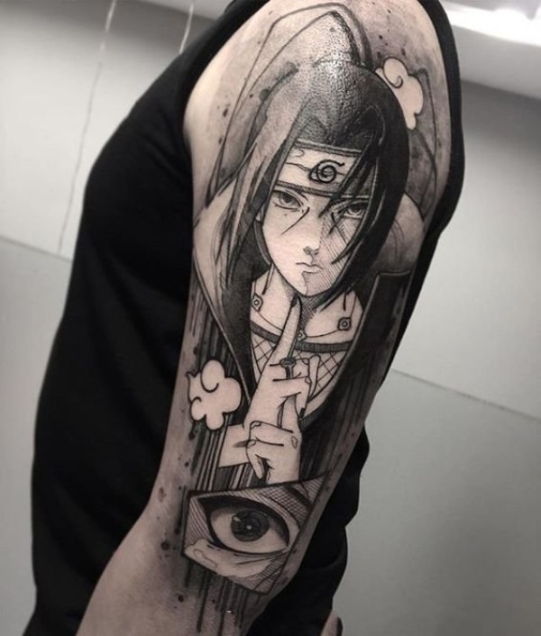 手臂上的火影忍者鸣人佐助卡卡西等角色动漫纹身图案