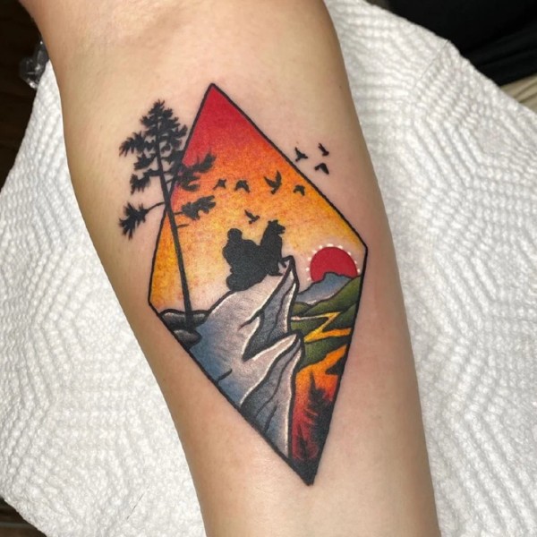 几何与风景结合的9张好看纹身图片