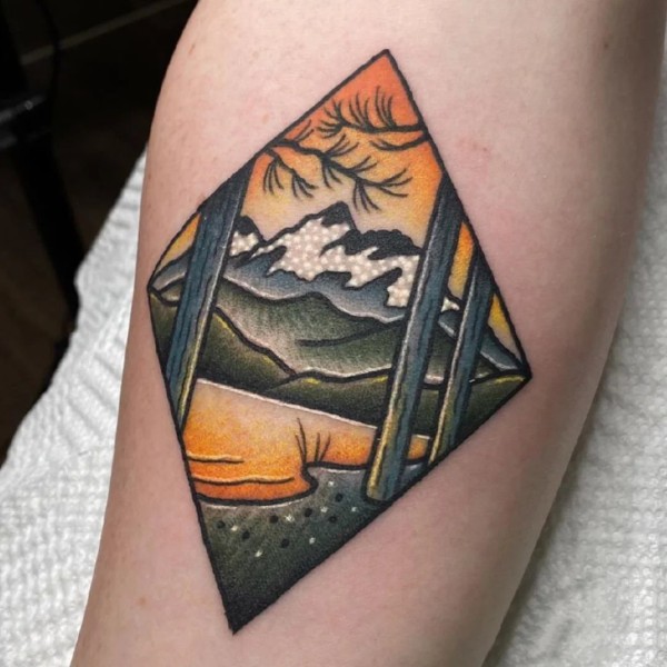 几何与风景结合的9张好看纹身图片