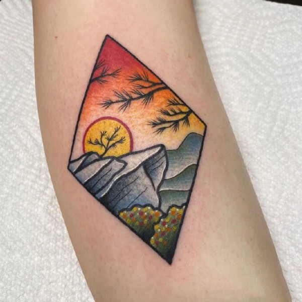 几何与风景结合的9张好看纹身图片