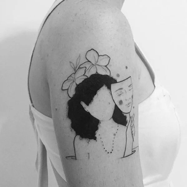 能面万媚纹身手稿_52张日式能剧面具纹身手稿图案素材欣赏