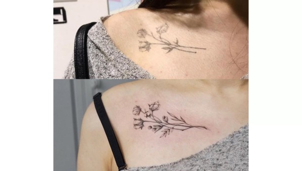 用玫瑰花做的修改遮盖纹身图案前后对比图