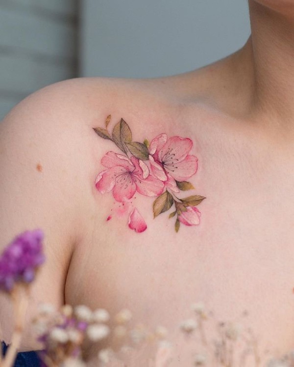一组粉粉嫩嫩的花卉纹身图片
