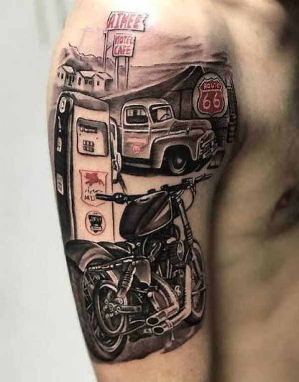 摩托车爱好者们身上帅气的摩托车纹身图案