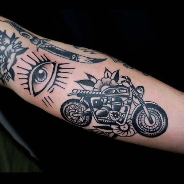 摩托车爱好者们身上帅气的摩托车纹身图案