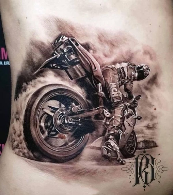 摩托车纹身图案-创意的霸气精致的摩托车骑手纹身图案
