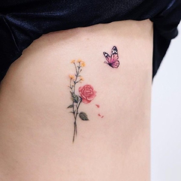 性感花朵纹身--女性大腿侧部性感的花朵纹身