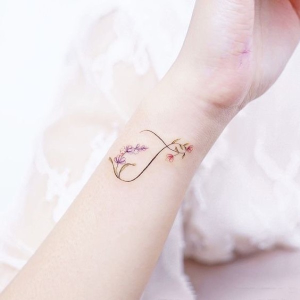 纹在手臂胳膊上的黑灰素花花卉纹身图案欣赏