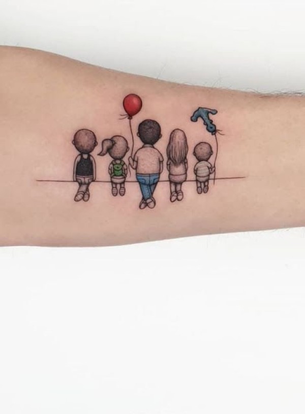 手臂彩色个性一家人纹身图片