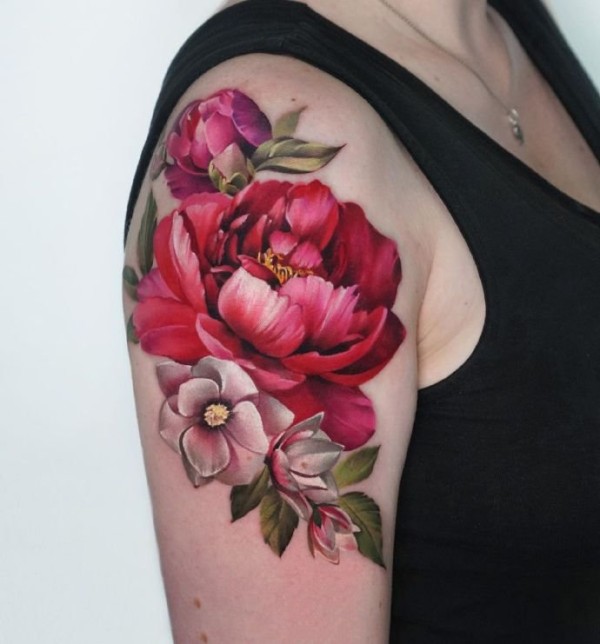 肩花纹身--一组适合肩部的黑灰肩花纹身图案欣赏