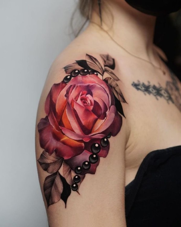 肩花纹身--一组适合肩部的黑灰肩花纹身图案欣赏