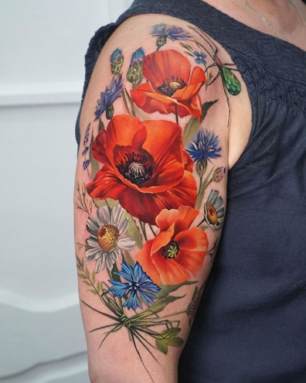 罂粟花纹身图--几张红色艳丽的唯美罂粟花纹身图案作品
