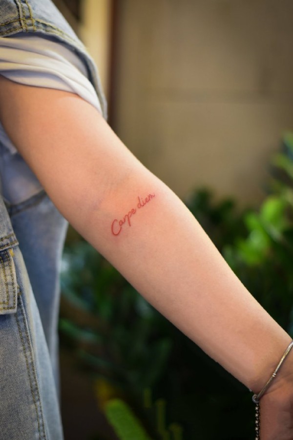 英文字母纹身--9张手臂胳膊上的简约英文字母纹身图案图片