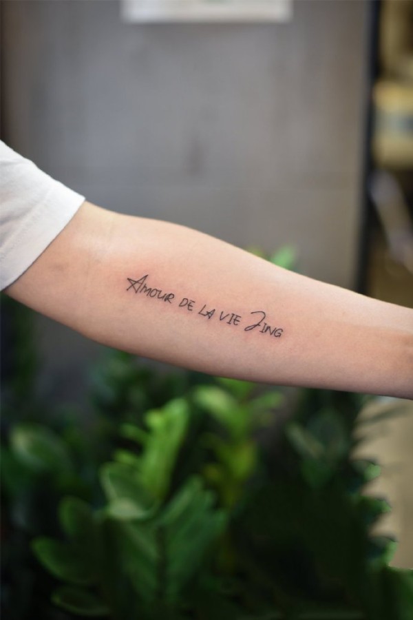 英文字母纹身--9张手臂胳膊上的简约英文字母纹身图案图片