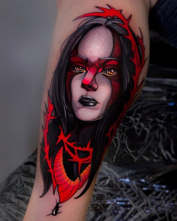 9张带着惊悚气息的彩色newschool纹身图片