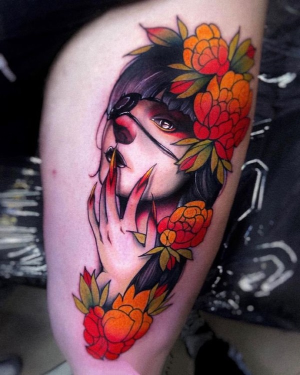 9张带着惊悚气息的彩色newschool纹身图片