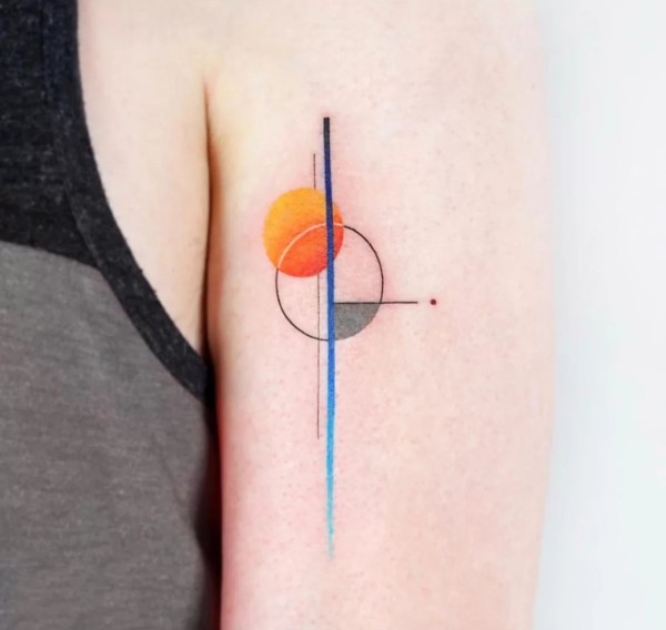 由色块和线条构成的一组抽象几何纹身图片