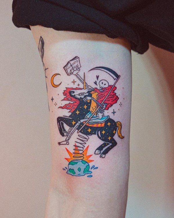 搞笑卡通纹身彩色线条鬼精灵电影里的纹身图案