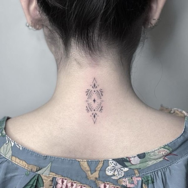 适合女生纹在后背脊柱处的唯美梵花纹身图案