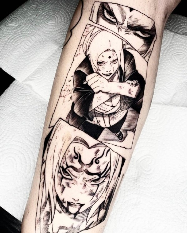 手臂上的火影忍者鸣人佐助卡卡西等角色动漫纹身图案