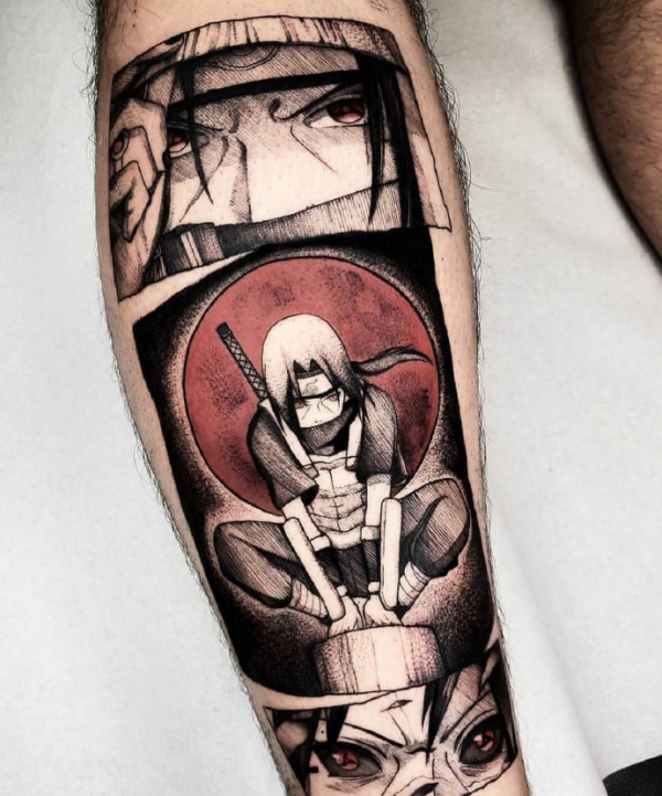 手臂上的火影忍者鸣人佐助卡卡西等角色动漫纹身图案