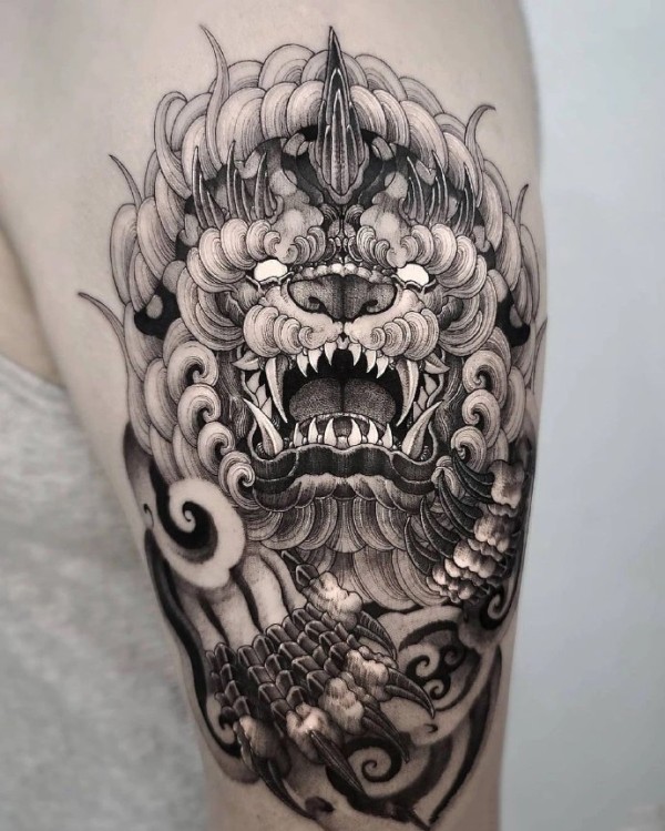 不一样的传统唐狮纹身图片9张