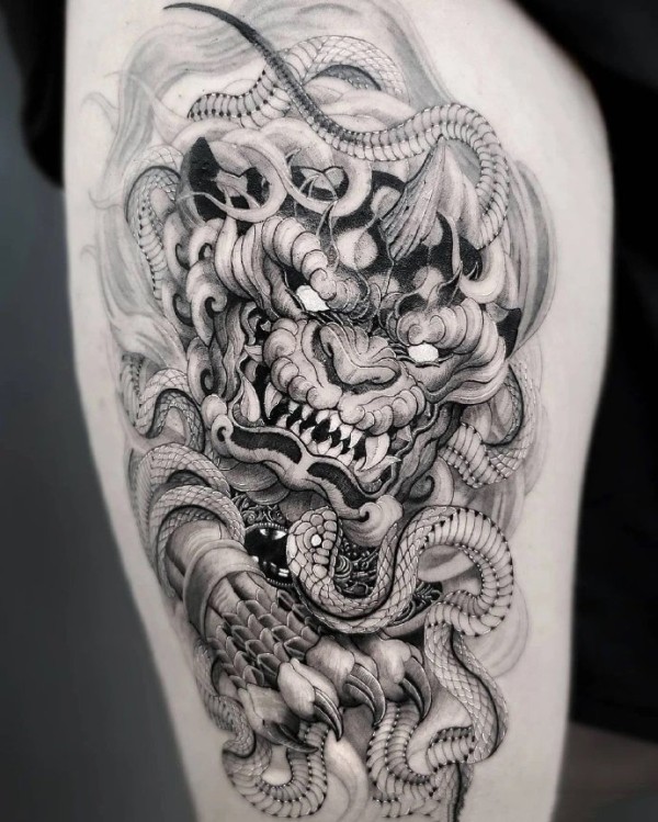 狮子头纹身手稿 黑色纹身狮子头纹身手稿
