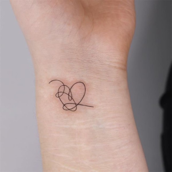 爱心小纹身--一组花花草草组成的心形小清新纹身图案