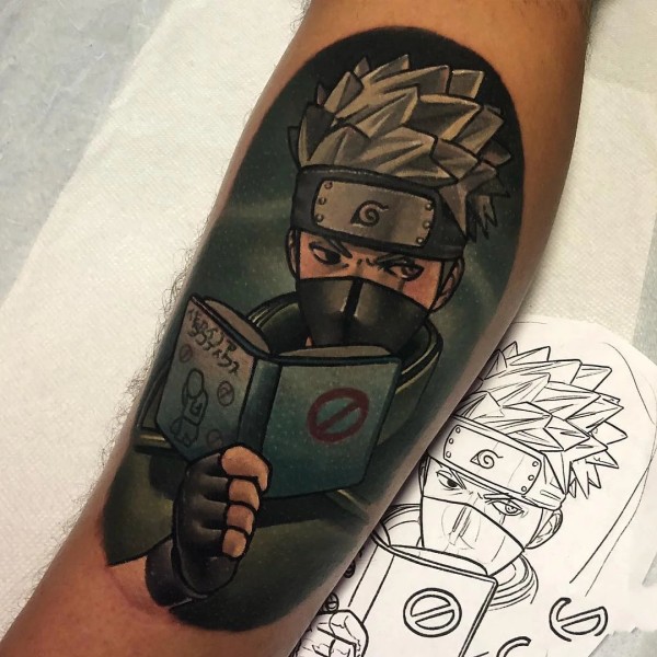 手臂上的火影忍者鸣人佐助卡卡西等角色动漫纹身图案