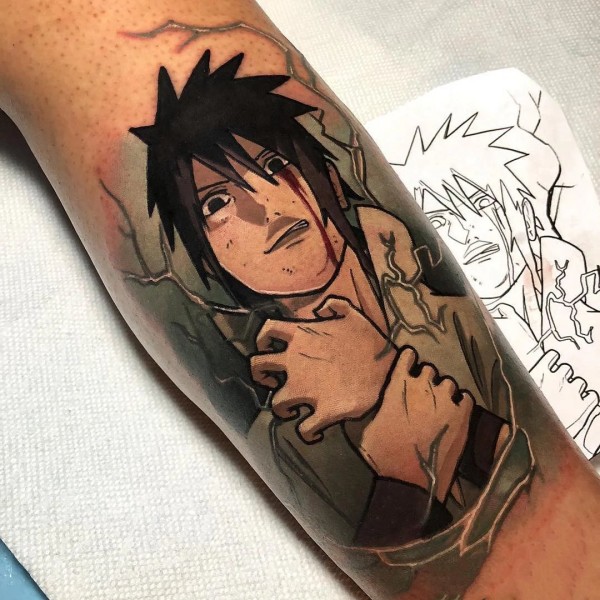 手臂上的火影忍者鸣人佐助卡卡西等角色动漫纹身图案