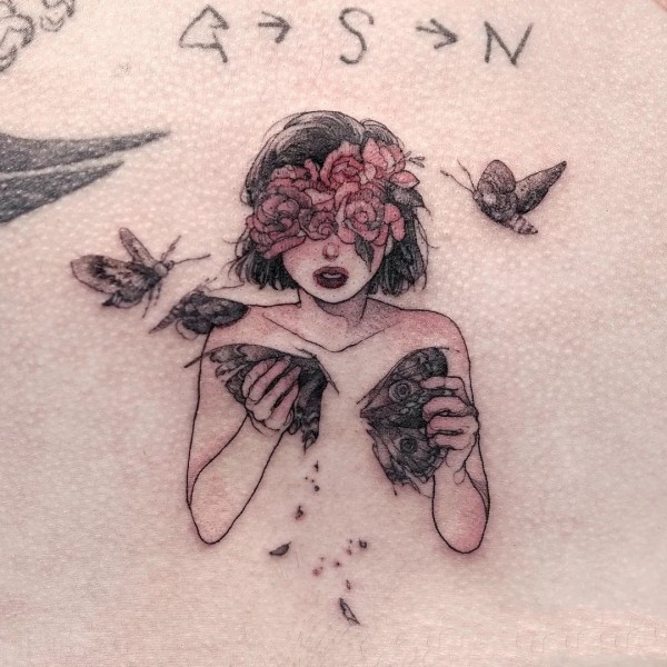 少女系列纹身图案-9张韩国纹身师Neondrug的创作少女系列纹身图片