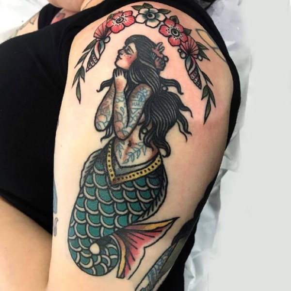 纹身美人鱼 魅力动人的美人鱼纹身图案